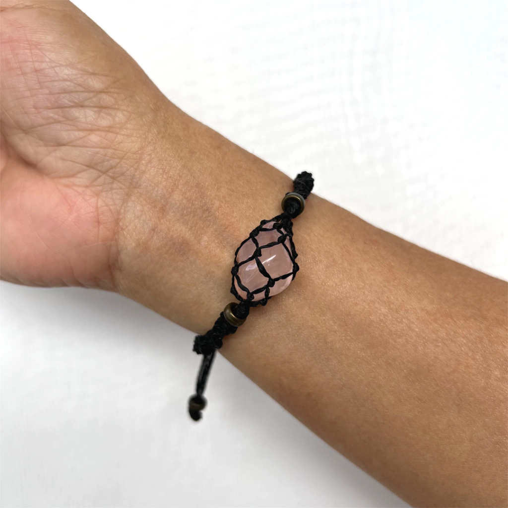 Essa pulseira é confeccionada artesanalmente em macramê com fio ajustável, permitindo um encaixe confortável em diferentes tamanhos de pulso. O Quartzo Rosa, uma das pedras mais conhecidas e utilizadas na espiritualidade, possui tonalidade rosada devido à presença de minerais como titânio e manganês. Associado ao chakra do coração, ele auxilia no equilíbrio das emoções, promovendo sensações de paz e segurança. Seu uso contínuo fortalece a autoestima, alivia tensões emocionais e contribui para a cura de traumas do passado. A pedra tem a capacidade de atrair vibrações amorosas e harmonizar relacionamentos, tornando-se um poderoso amuleto para quem busca afeto, ternura e compreensão.